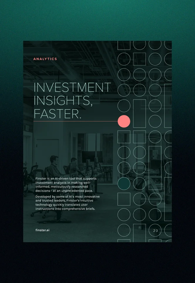Finster AI is accelerating the investment insight process with its proprietary AI. Built for the sharpest minds in asset management, private credit and investment banking