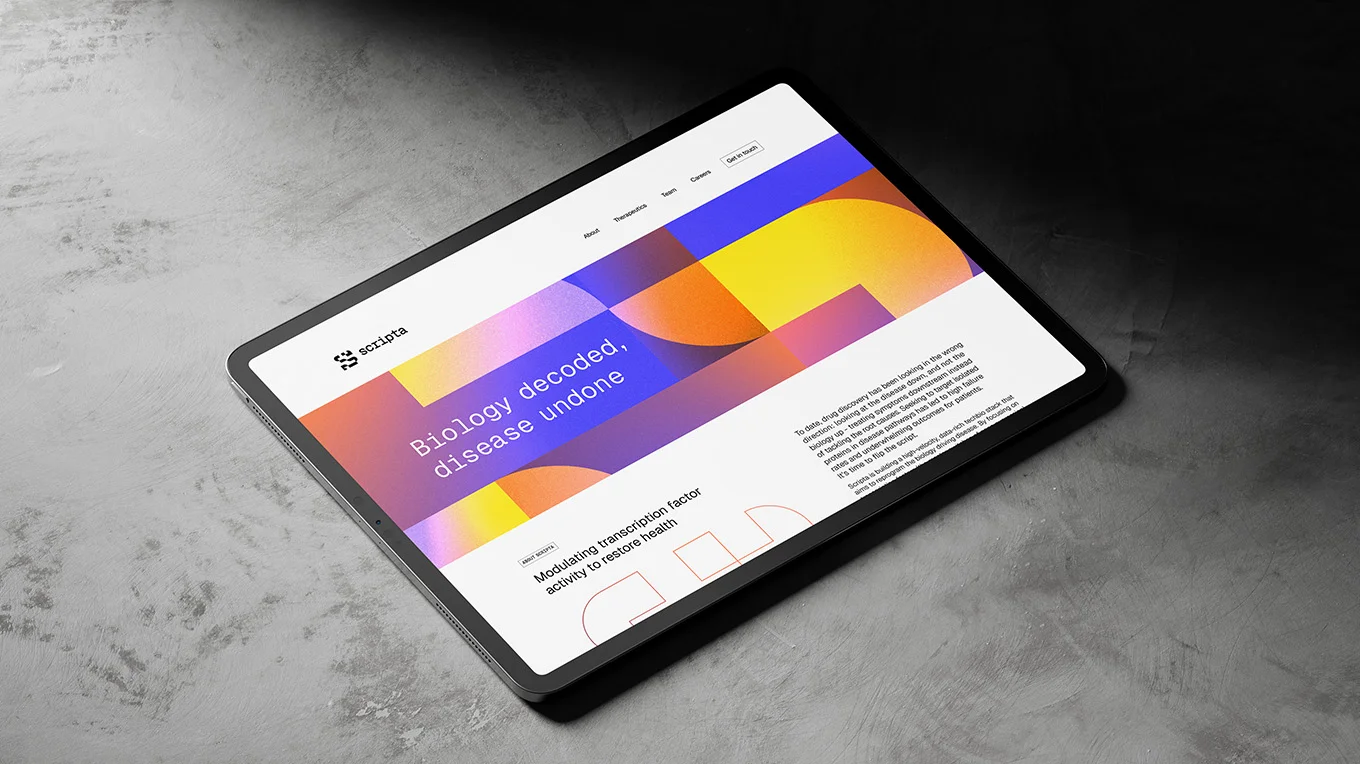 Oxford-based techbio company Scripta Therapeutics are building the future of drug discovery. They needed a brand that showcased the tech, the method and the open nature of their company.